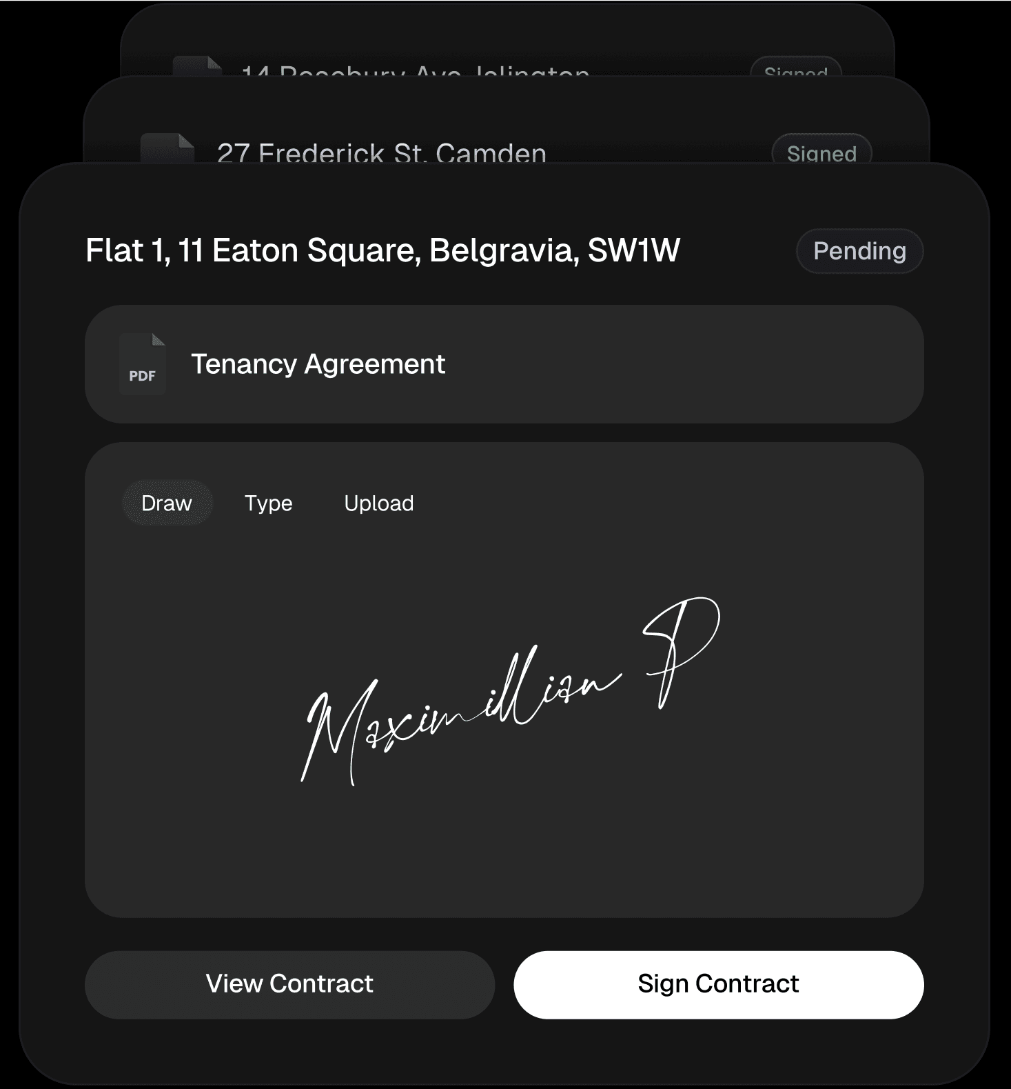 When tenants select your property, send smart tenancy agreements with pre-populated details. Collect deposits and rent via Apple Pay or bank transfer, splitting the payments across housemates and guarantors. Track everything in real-time with automatic CRM sync